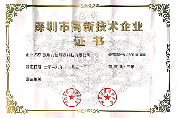 2020年是新的一年,深圳市信輝源科技有限公司也踏上了新的征程。 新年伊始,信輝源喜獲佳音!憑借專業(yè)的研發(fā)團(tuán)隊(duì)、雄厚的技術(shù)實(shí)力、不斷創(chuàng)新的能力和科學(xué)的企業(yè)管理,成功被認(rèn)定為國(guó)家高新技術(shù)企業(yè)。 2020年3月26日,公司獲得國(guó)家稅務(wù)總局深圳市科技創(chuàng)新委員會(huì)、深圳市財(cái)政委員會(huì)、深圳市稅務(wù)局聯(lián)合頒發(fā)的“高新技術(shù)企業(yè)”證書,正式邁入國(guó)家高新技術(shù)企業(yè)行列。